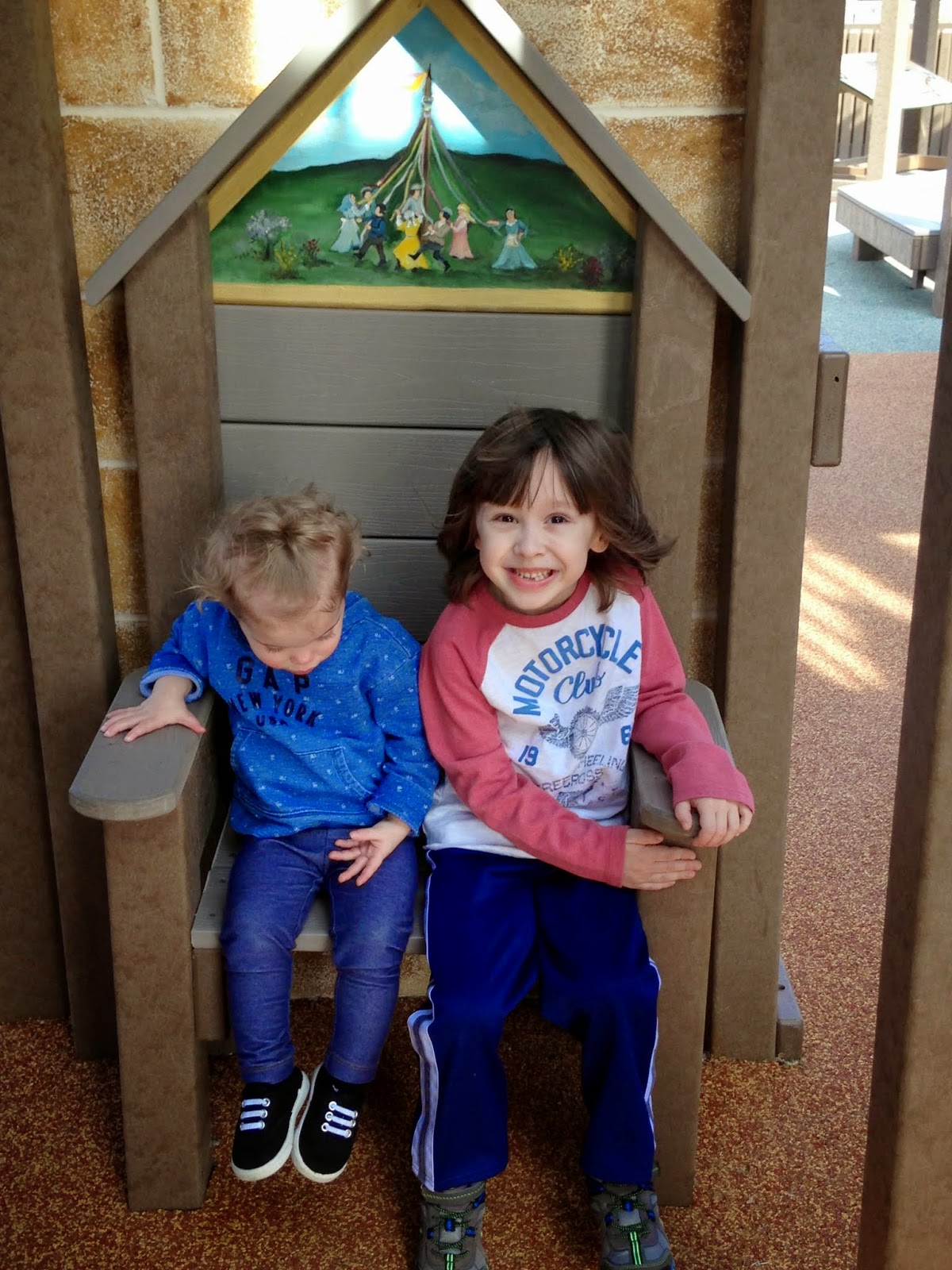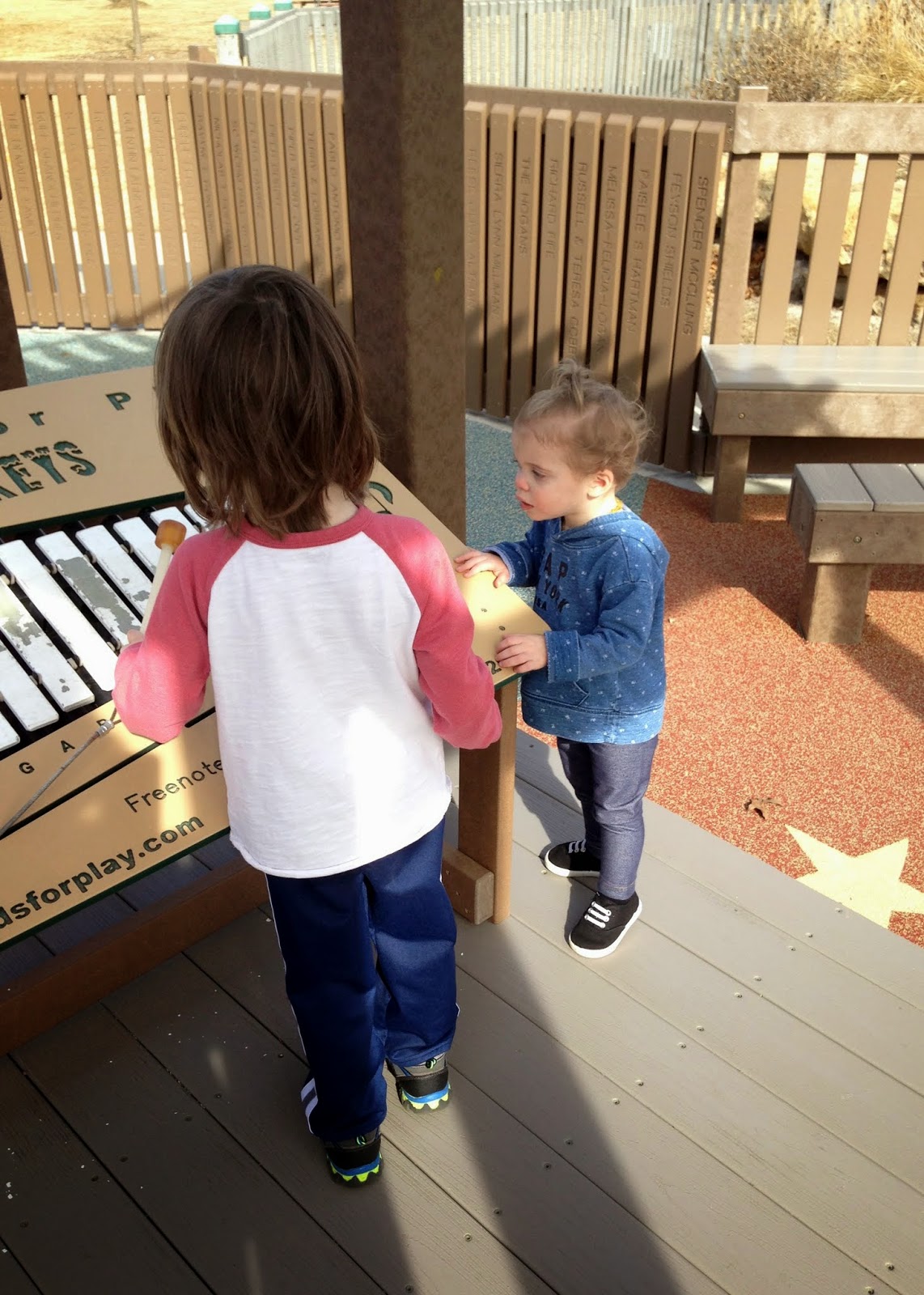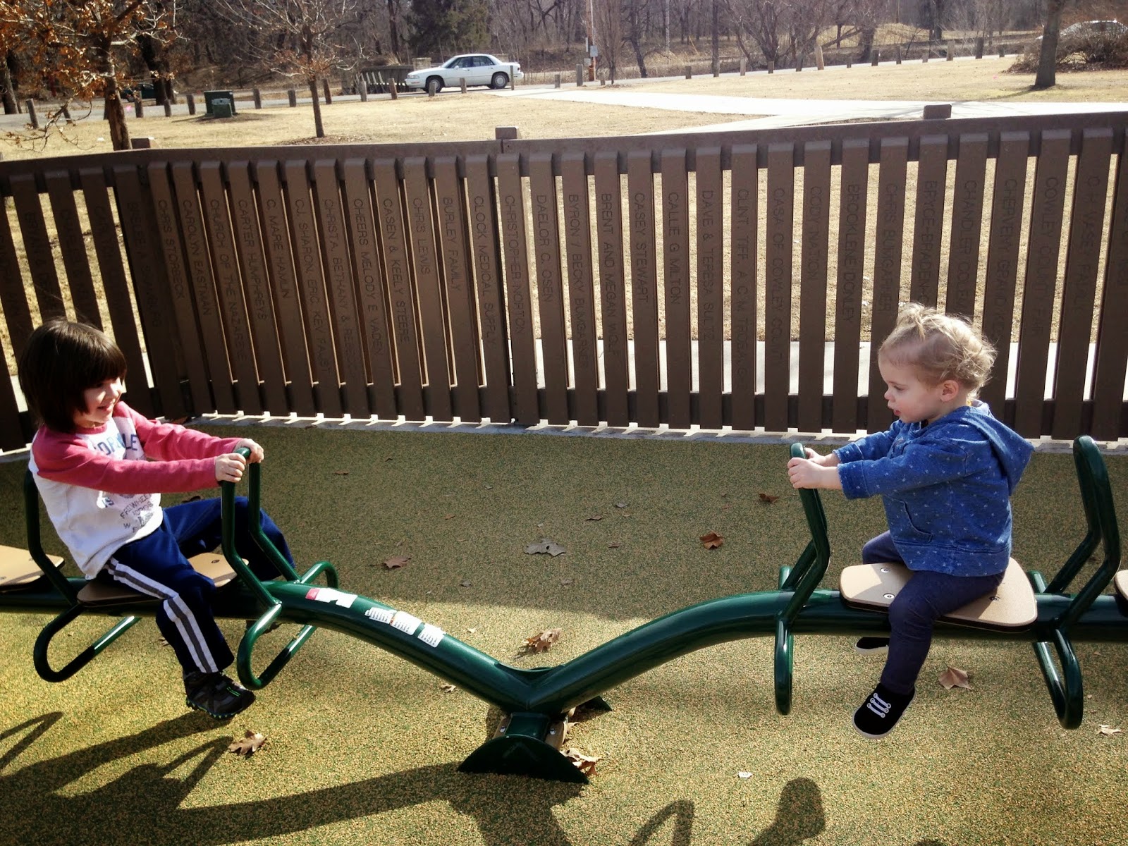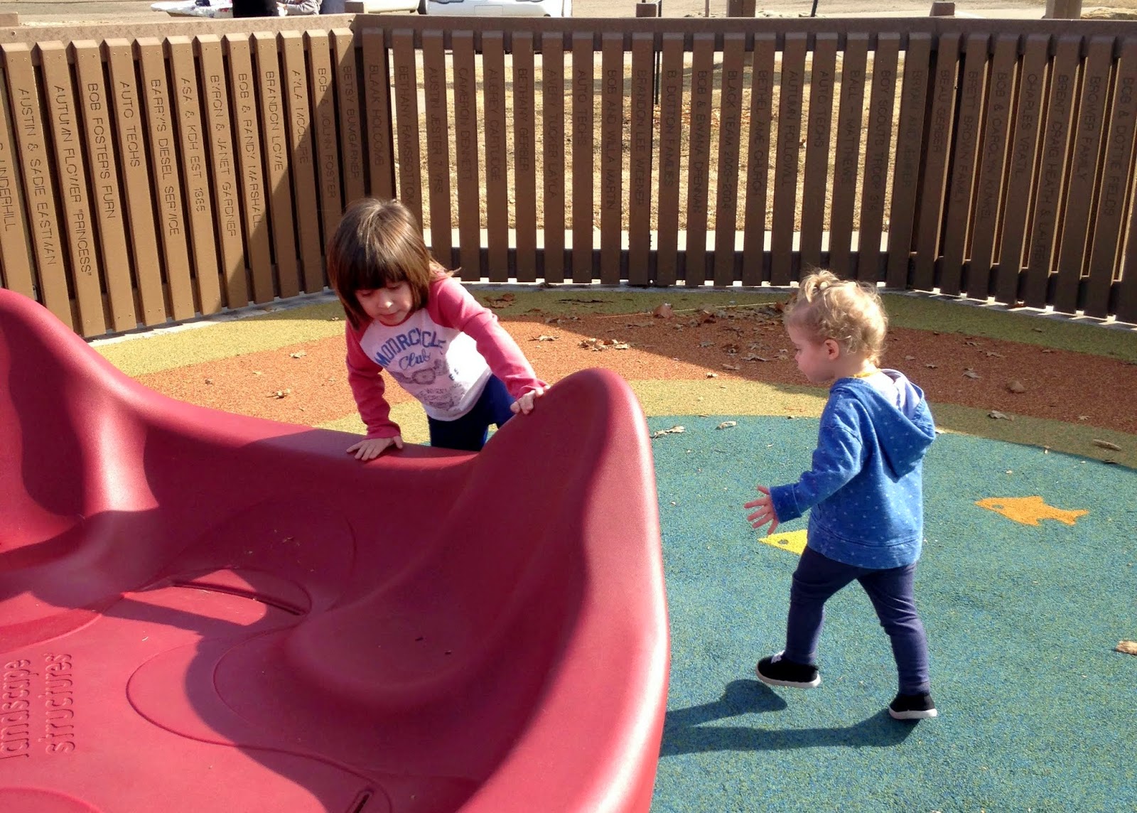 What a beautiful day! I can't believe it's almost the end of January and we had 70+ degree weather.... and I am a happy mommy!! We had so much fun at the park. I'm including a picture of the front entrance, since some of you haven't seen the rebuild. We are so lucky to have such a wonderful playground!